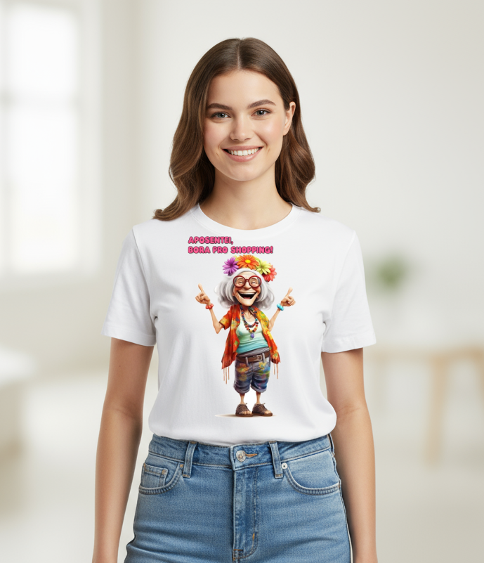 Camiseta Tradicional, Gola Redonda, Casual com Estampa Aposentada