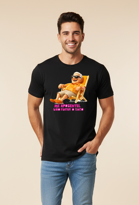 Desfrute do conforto e da durabilidade que você procura com nossa camiseta em algodão fio 26.1. Mais encorpada que o fio 30.1, porém mais leve e maleável que o fio 20.1, ela oferece um visual premium e um caimento impecável. Ideal para quem busca um tecido resistente, mas sem o peso excessivo. A estrutura da malha 26.1 garante um toque macio e a valorização da estampa, sendo a escolha perfeita para marcas que prezam por qualidade e um visual moderno e presente. Estampas com figuras de desenhos de pessoas aposentadas.